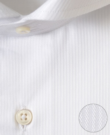 通常針目は3cmに18針以上で高級とされていますが、私たちのシャツは21針で縫い上げられています。また、耐久性に優れた「巻き伏せ本縫い」でシャツを仕立てています。