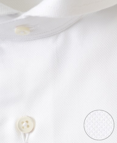 ■襟の表裏のパターンに差をつけ、コンパクトかつ構築的な襟を実現。品の良いドレスシャツの証である、首に巻きつくような内巻きフォルムは、匠によるいせ込み技術の成果です。