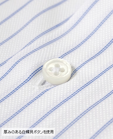 天然白蝶貝使用。その輝きは天然貝の最高級品として世界の高級ドレスシャツに使用されています。
