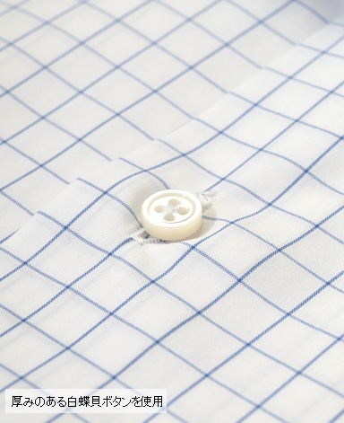 天然白蝶貝使用。その輝きは天然貝の最高級品として世界の高級ドレスシャツに使用されています。