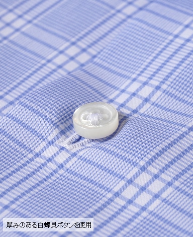 天然白蝶貝使用。その輝きは天然貝の最高級品として世界の高級ドレスシャツに使用されています。