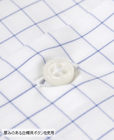 天然白蝶貝使用。その輝きは天然貝の最高級品として世界の高級ドレスシャツに使用されています。
