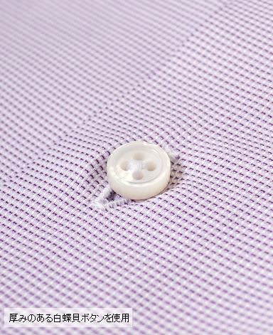 天然白蝶貝使用。その輝きは天然貝の最高級品として世界の高級ドレスシャツに使用されています。