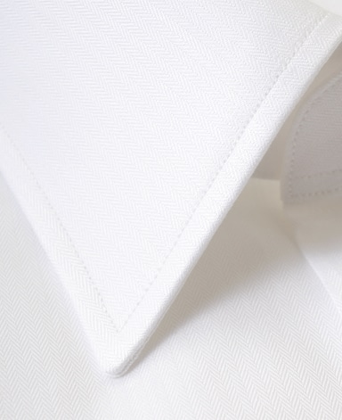 ■襟の表裏のパターンに差をつけ、コンパクトかつ構築的な襟を実現。品の良いドレスシャツの証である、首に巻きつくような内巻きフォルムは、匠によるいせ込み技術の成果です。