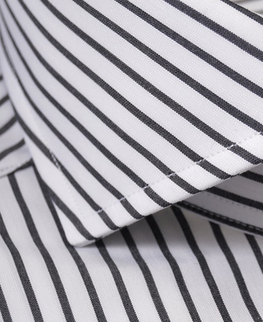 ■襟の表裏のパターンに差をつけ、コンパクトかつ構築的な襟を実現。品の良いドレスシャツの証である、首に巻きつくような内巻きフォルムは、匠によるいせ込み技術の成果です。
