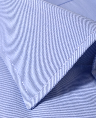 ■襟の表裏のパターンに差をつけ、コンパクトかつ構築的な襟を実現。品の良いドレスシャツの証である、首に巻きつくような内巻きフォルムは、匠によるいせ込み技術の成果です。