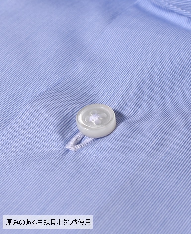 ■第一ボタンには、シャープな襟に合う小さめの9mmボタンを使用。