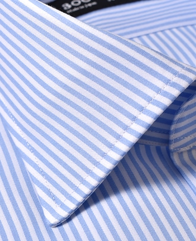 ■襟の表裏のパターンに差をつけ、コンパクトかつ構築的な襟を実現。品の良いドレスシャツの証である、首に巻きつくような内巻きフォルムは、匠によるいせ込み技術の成果です。