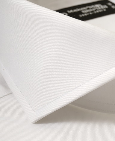 ■襟の表裏のパターンに差をつけ、コンパクトかつ構築的な襟を実現。品の良いドレスシャツの証である、首に巻きつくような内巻きフォルムは、匠によるいせ込み技術の成果です。