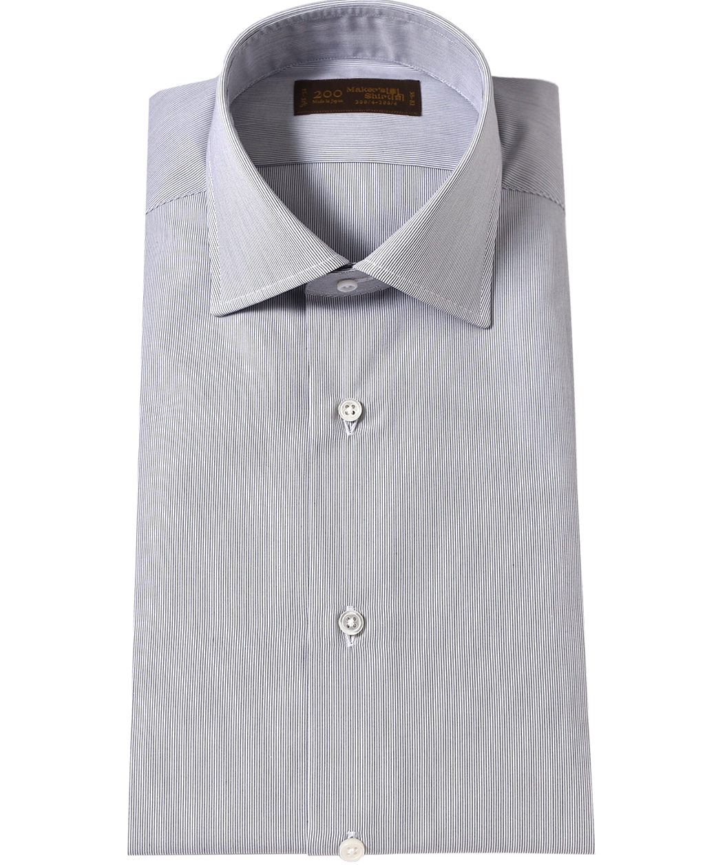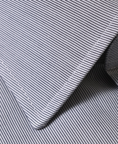 ■襟の表裏のパターンに差をつけ、コンパクトかつ構築的な襟を実現。品の良いドレスシャツの証である、首に巻きつくような内巻きフォルムは、匠によるいせ込み技術の成果です。