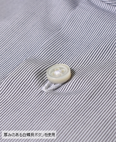 ■第一ボタンには、シャープな襟に合う小さめの9mmボタンを使用。