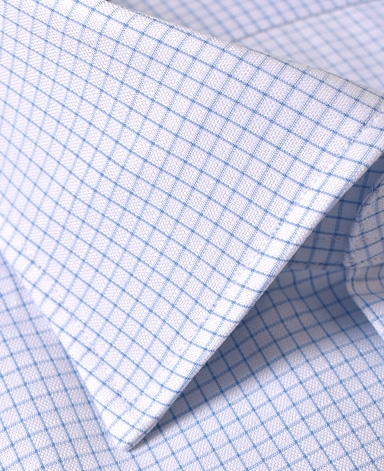 ■襟の表裏のパターンに差をつけ、コンパクトかつ構築的な襟を実現。品の良いドレスシャツの証である、首に巻きつくような内巻きフォルムは、匠によるいせ込み技術の成果です。