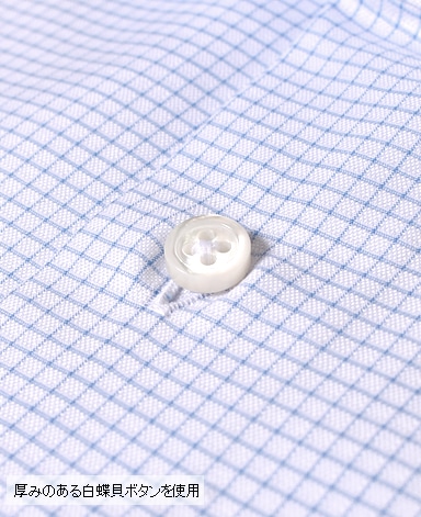 ■第一ボタンには、シャープな襟に合う小さめの9mmボタンを使用。