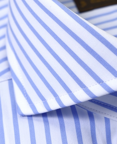 ■襟の表裏のパターンに差をつけ、コンパクトかつ構築的な襟を実現。品の良いドレスシャツの証である、首に巻きつくような内巻きフォルムは、匠によるいせ込み技術の成果です。