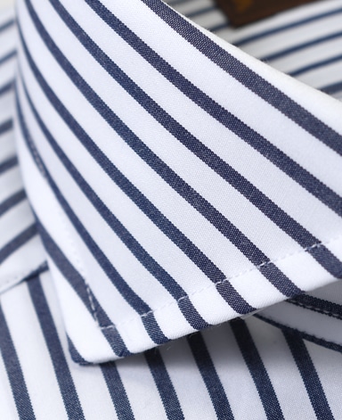 ■襟の表裏のパターンに差をつけ、コンパクトかつ構築的な襟を実現。品の良いドレスシャツの証である、首に巻きつくような内巻きフォルムは、匠によるいせ込み技術の成果です。