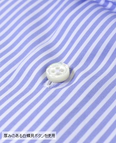 通常針目は3cmに18針以上で高級とされていますが、私たちのシャツは21針で縫い上げられています。また、耐久性に優れた「巻き伏せ本縫い」でシャツを仕立てています。
