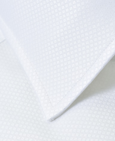 ■襟の表裏のパターンに差をつけ、コンパクトかつ構築的な襟を実現。品の良いドレスシャツの証である、首に巻きつくような内巻きフォルムは、匠によるいせ込み技術の成果です。