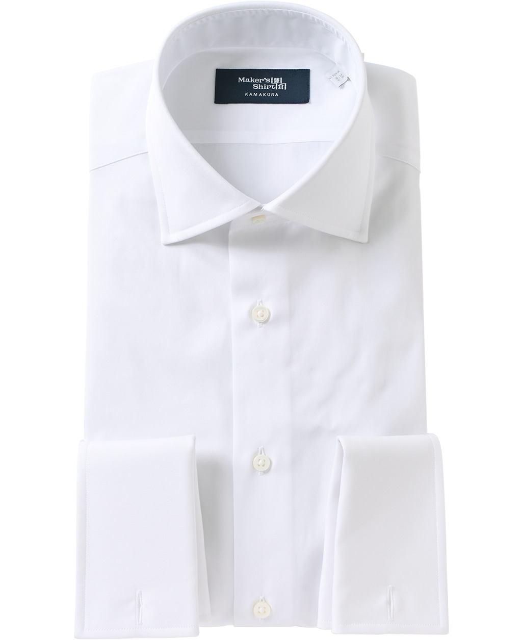 ■袖は細く、自然と前ふりになる美しいフォルムが完成しました。ジャケットに合うよう誂えられた袖カーブは、シャツのカフスがジャケット袖口の傾斜に沿うよう調整されています。