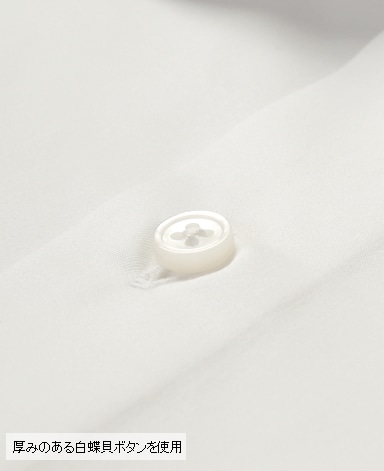 天然白蝶貝使用。その輝きは天然貝の最高級品として世界の高級ドレスシャツに使用されています。