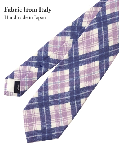 ■ネクタイのねじりが起こらないように生地の長さを充分にとって、バイアス取り(斜め取り)しています。