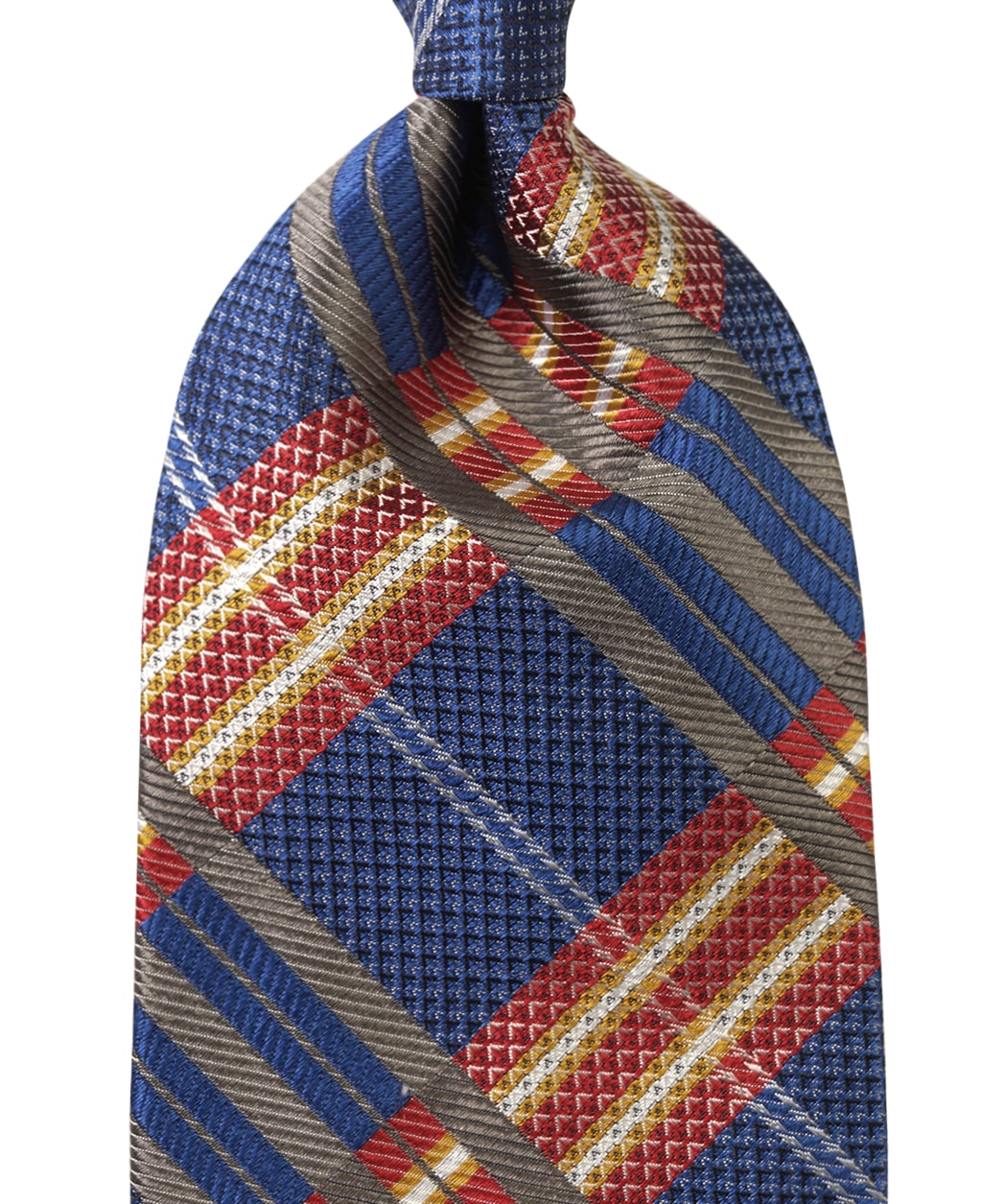 ■ネクタイのねじりが起こらないように生地の長さを充分にとって、バイアス取り(斜め取り)しています。