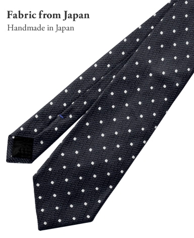 ■ネクタイのねじりが起こらないように生地の長さを充分にとって、バイアス取り(斜め取り)しています。