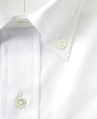 襟とカフスの芯地は接着剤で固めず、首と手首に優しくフィットするよう綿のフラシ芯を使用しています。美しい輝きを放つ天然高瀬貝釦