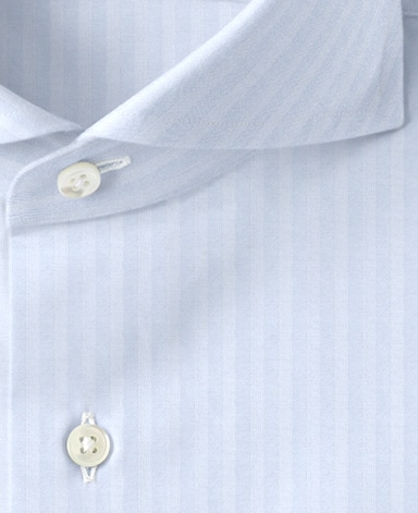 通常針目は3cmに18針以上で高級とされていますが、私たちのシャツは21針で縫い上げられています。また、耐久性に優れた「巻き伏せ本縫い」でシャツを仕立てています。