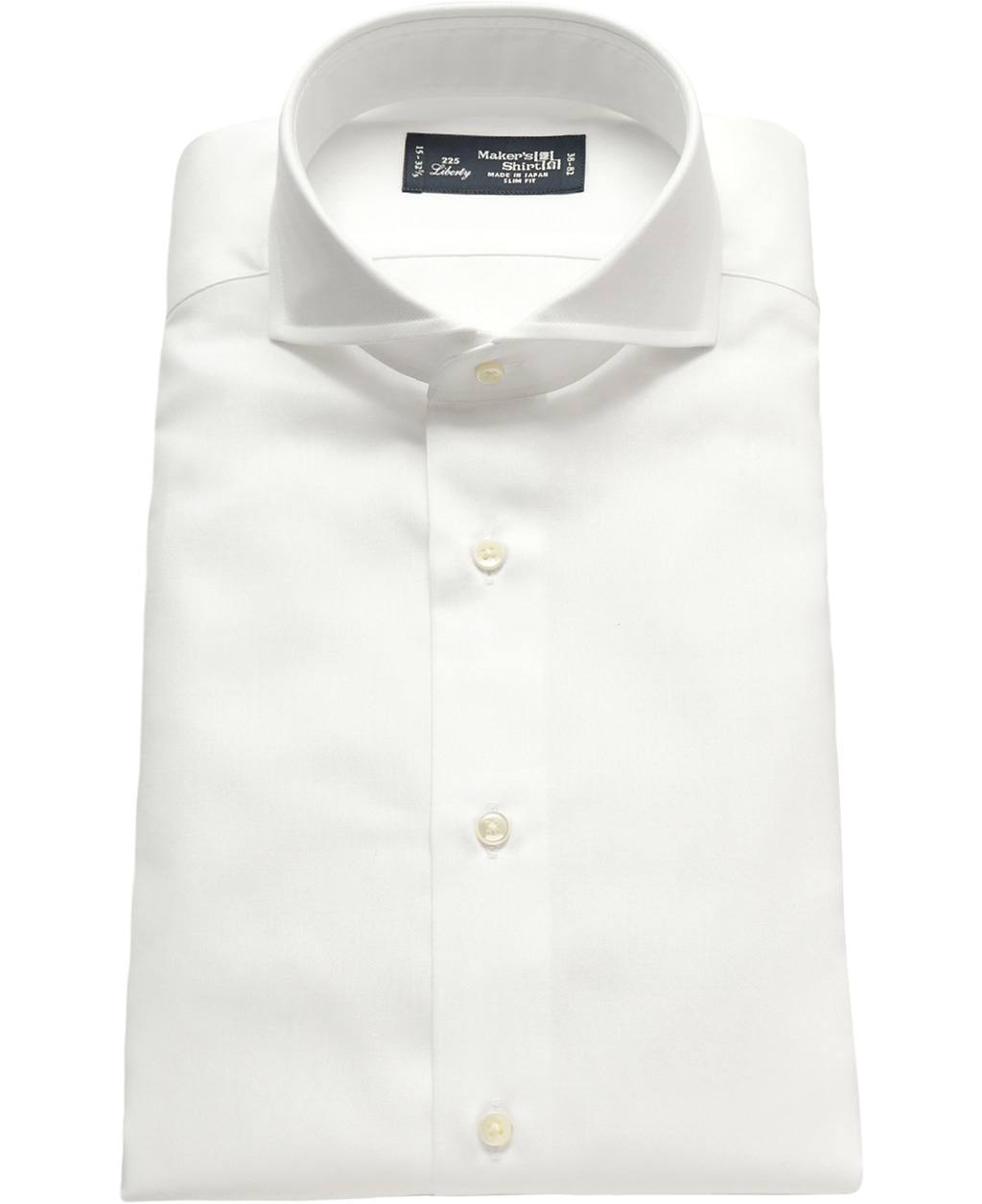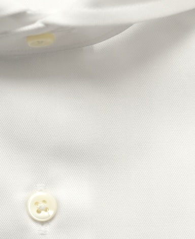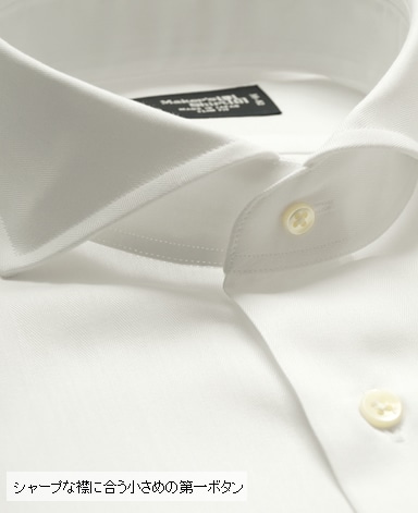 ■襟の表裏のパターンに差をつけ、コンパクトかつ構築的な襟を実現。品の良いドレスシャツの証である、首に巻きつくような内巻きフォルムは、匠によるいせ込み技術の成果です。