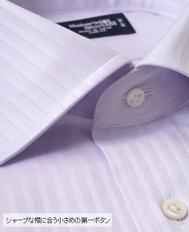 通常針目は3cmに18針以上で高級とされていますが、私たちのシャツは21針で縫い上げられています。また、耐久性に優れた「巻き伏せ本縫い」でシャツを仕立てています。