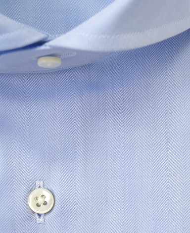 通常針目は3cmに18針以上で高級とされていますが、私たちのシャツは21針で縫い上げられています。また、耐久性に優れた「巻き伏せ本縫い」でシャツを仕立てています。