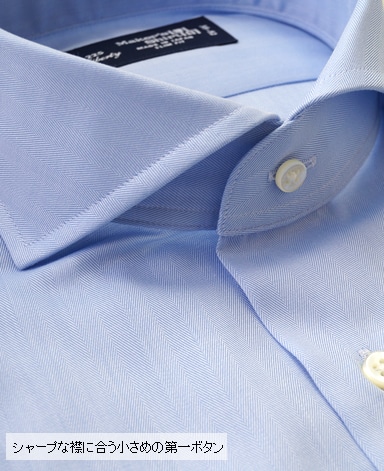 ■第一ボタンには、シャープな襟に合う小さめの9mmボタンを使用。