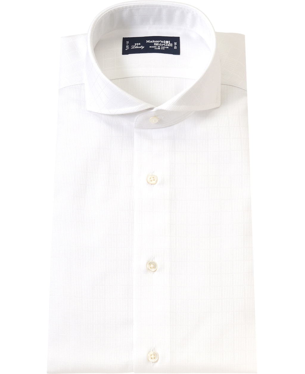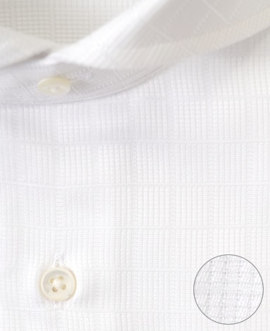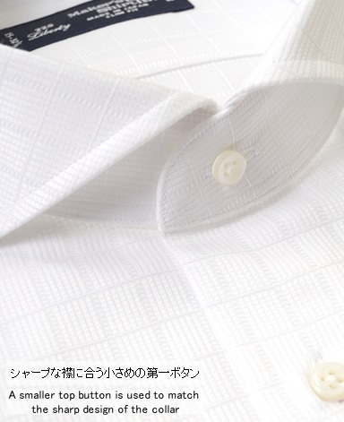 ■襟の表裏のパターンに差をつけ、コンパクトかつ構築的な襟を実現。品の良いドレスシャツの証である、首に巻きつくような内巻きフォルムは、匠によるいせ込み技術の成果です。