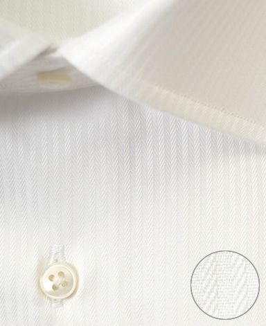 ■襟の表裏のパターンに差をつけ、コンパクトかつ構築的な襟を実現。品の良いドレスシャツの証である、首に巻きつくような内巻きフォルムは、匠によるいせ込み技術の成果です。