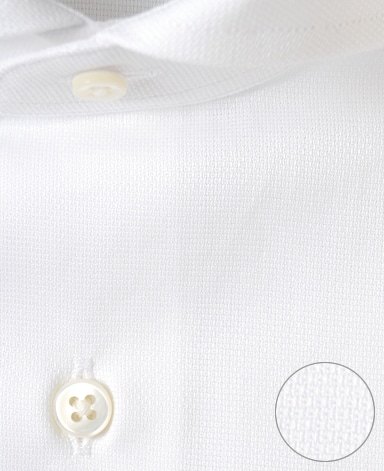 ■襟の表裏のパターンに差をつけ、コンパクトかつ構築的な襟を実現。品の良いドレスシャツの証である、首に巻きつくような内巻きフォルムは、匠によるいせ込み技術の成果です。