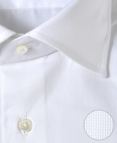 ■襟の表裏のパターンに差をつけ、コンパクトかつ構築的な襟を実現。品の良いドレスシャツの証である、首に巻きつくような内巻きフォルムは、匠によるいせ込み技術の成果です。