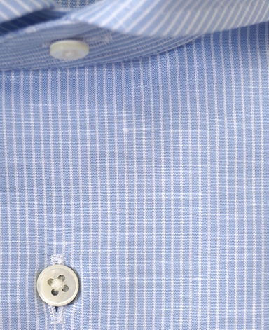 ■襟の表裏のパターンに差をつけ、コンパクトかつ構築的な襟を実現。品の良いドレスシャツの証である、首に巻きつくような内巻きフォルムは、匠によるいせ込み技術の成果です。