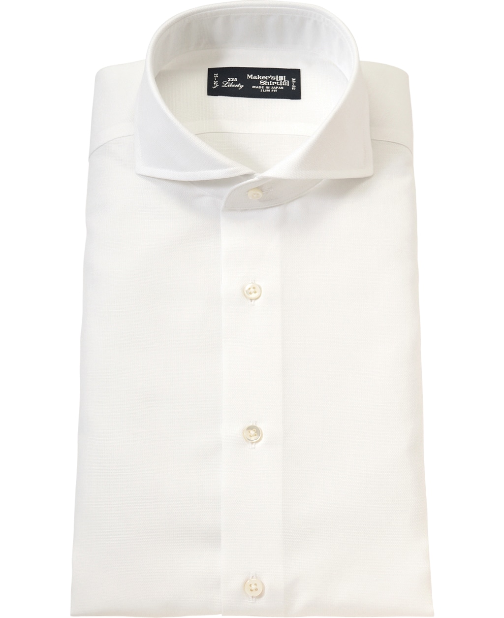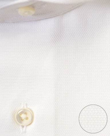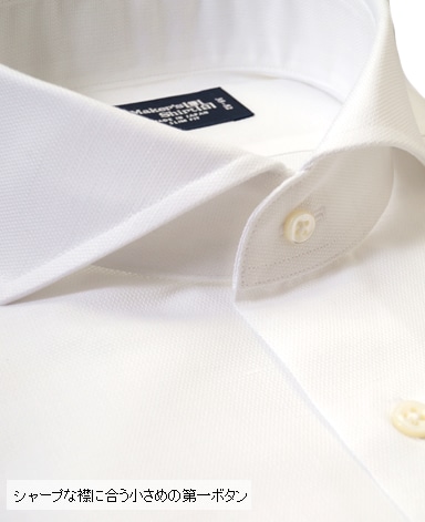 ■襟の表裏のパターンに差をつけ、コンパクトかつ構築的な襟を実現。品の良いドレスシャツの証である、首に巻きつくような内巻きフォルムは、匠によるいせ込み技術の成果です。