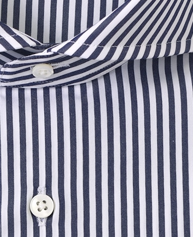 通常針目は3cmに18針以上で高級とされていますが、私たちのシャツは21針で縫い上げられています。また、耐久性に優れた「巻き伏せ本縫い」でシャツを仕立てています。