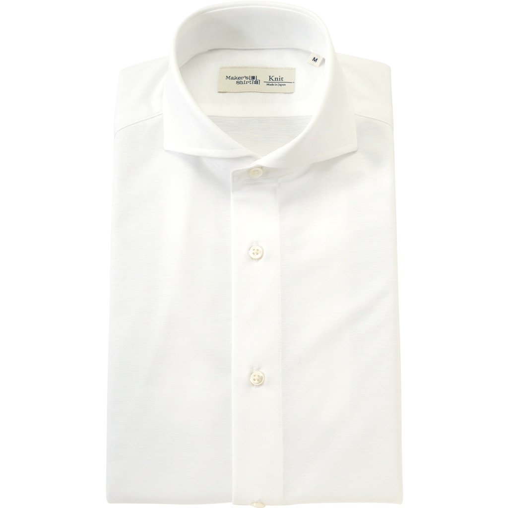 高密度ニット生地はドレスシャツと見間違うほどの美しさ。