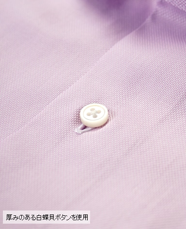 天然白蝶貝使用。その輝きは天然貝の最高級品として世界の高級ドレスシャツに使用されています。