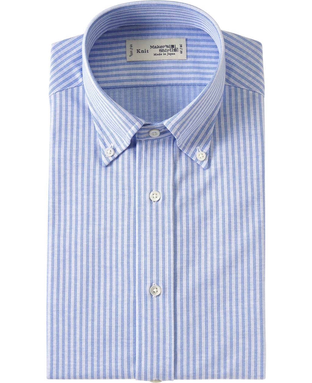高密度ニット生地はドレスシャツと見間違うほどの美しさ。