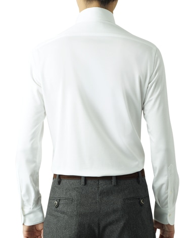 ニットシャツ製品はクリーニング店をご利用頂いた場合、プレス工程時に設備や機材の問題によって、着丈や袖丈が大きく伸びてしまう恐れがあります。ご家庭でのお洗濯をおすすめ致します。