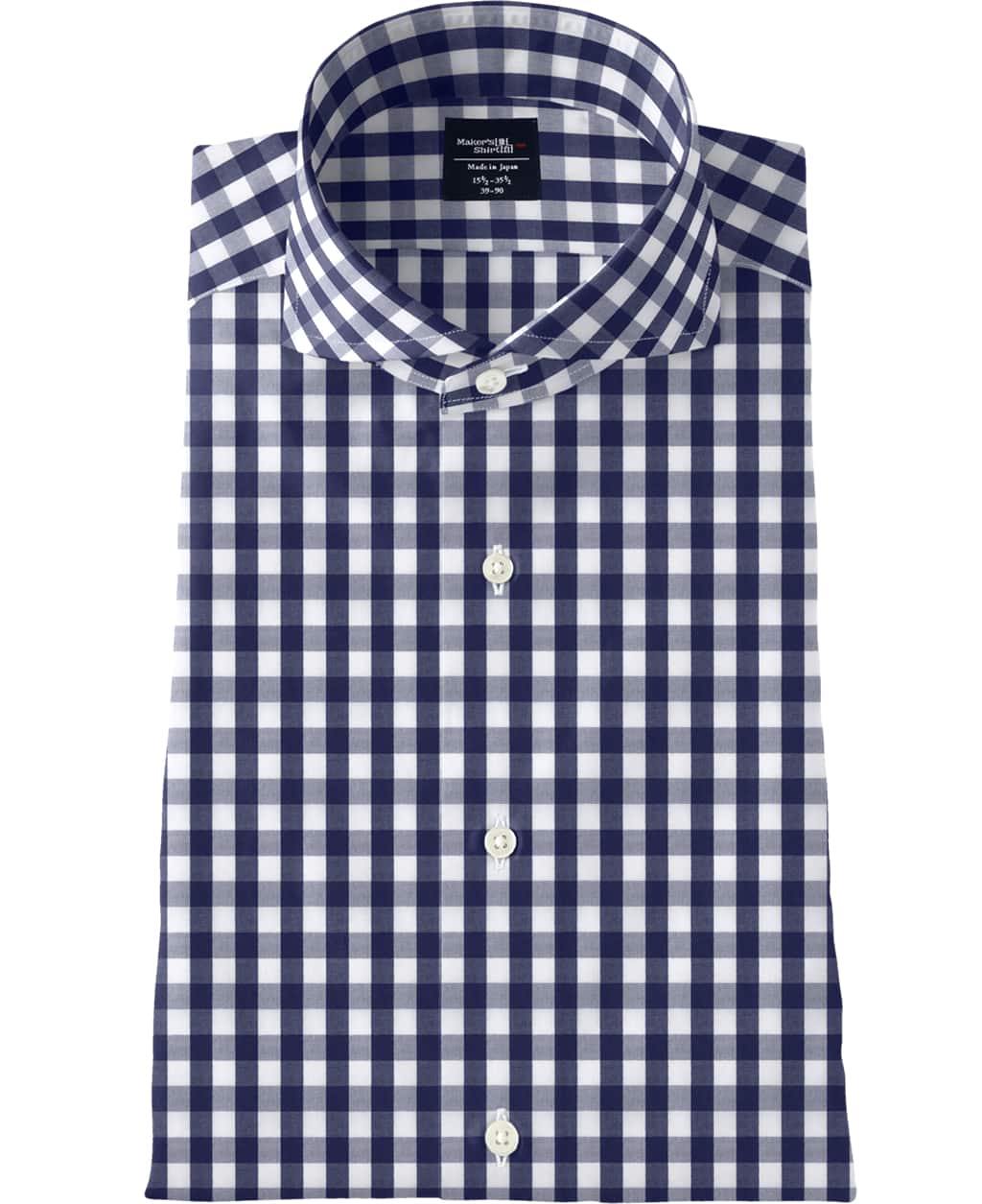 通常針目は3cmに18針以上で高級とされていますが、私たちのシャツは21針で縫い上げられています。また、耐久性に優れた「巻き伏せ本縫い」でシャツを仕立てています。