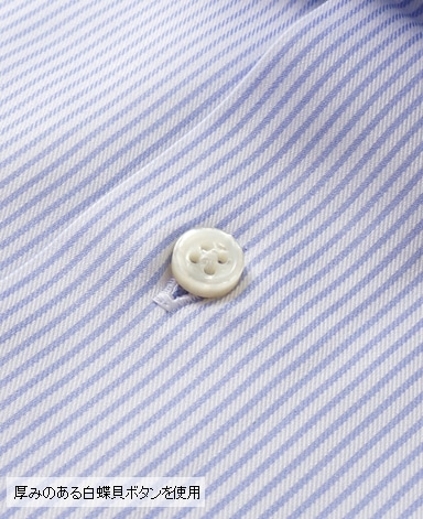 天然白蝶貝使用。その輝きは天然貝の最高級品として世界の高級ドレスシャツに使用されています。