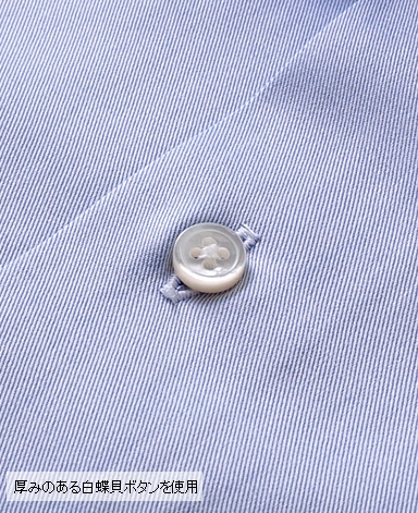 天然白蝶貝使用。その輝きは天然貝の最高級品として世界の高級ドレスシャツに使用されています。