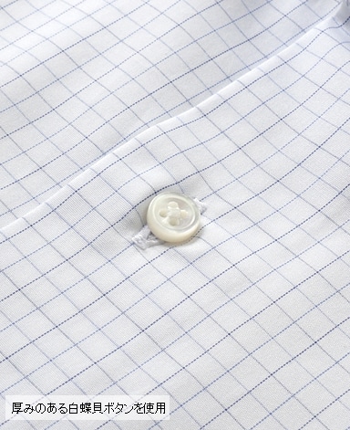 天然白蝶貝使用。その輝きは天然貝の最高級品として世界の高級ドレスシャツに使用されています。
