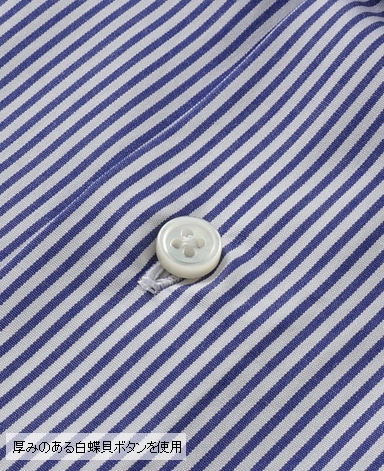 天然白蝶貝使用。その輝きは天然貝の最高級品として世界の高級ドレスシャツに使用されています。