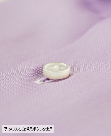 天然白蝶貝使用。その輝きは天然貝の最高級品として世界の高級ドレスシャツに使用 されています。
