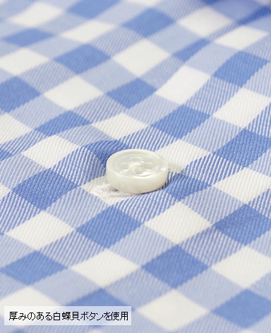 天然白蝶貝使用。その輝きは天然貝の最高級品として世界の高級ドレスシャツに使用されています。